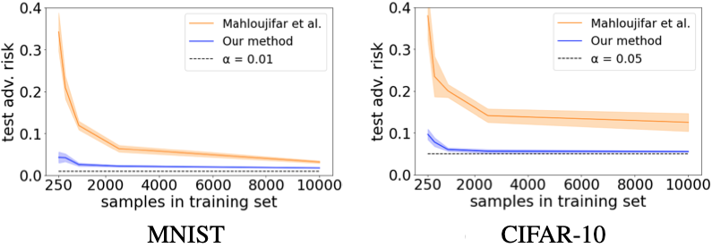 Concentration of measure has been argued to be the fundamental cause of adversarial vulnerability. Mahloujifar et al. (2019) presented an empirical way to measure the concentration of a data distribution using samples, and employed it to find lower bounds on intrinsic robustness for several benchmark datasets. However, it remains unclear whether these lower bounds are tight enough to provide a useful approximation for the intrinsic robustness of a dataset. To gain a deeper understanding of the concentration of measure phenomenon, we first extend the Gaussian Isoperimetric Inequality to non-spherical Gaussian measures and arbitrary Lp-norms (p>=2). We leverage these theoretical insights to design a method that uses half-spaces to estimate the concentration of any empirical dataset under Lp-norm distance metrics. Our proposed algorithm is more efficient than Mahloujifar et al. (2019)’s, and experiments on synthetic datasets and image benchmarks demonstrate that it is able to find much tighter intrinsic robustness bounds. These tighter estimates provide further evidence that rules out intrinsic dataset concentration as a possible explanation for the adversarial vulnerability of state-of-the-art classifiers.